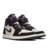 The Air Jordan 1 Retro High OG Defiant SB “LA to Chicago” features a unique design that changes color from purple and gold to red and black with wear, representing the transformation from the Los Angeles Lakers to the Chicago Bulls.
